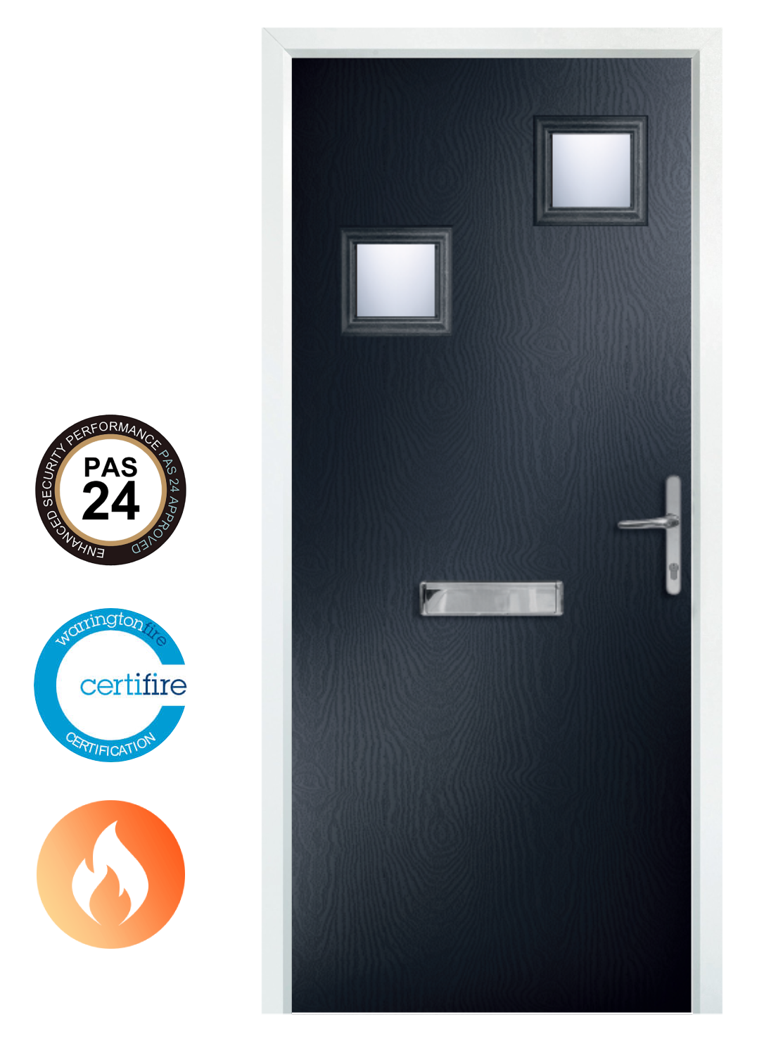 This fire door collection has undergone rigorous testing to consistently prove performance and ensure compliance with all requirements of MHCLG, BS EN 1634 for Fire resistance and Smoke control, PAS24 enhanced security, and third-party certified and audited for fire, smoke and security by Q Mark.